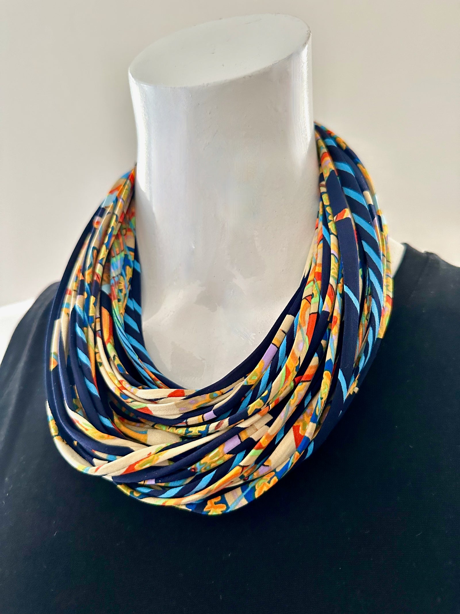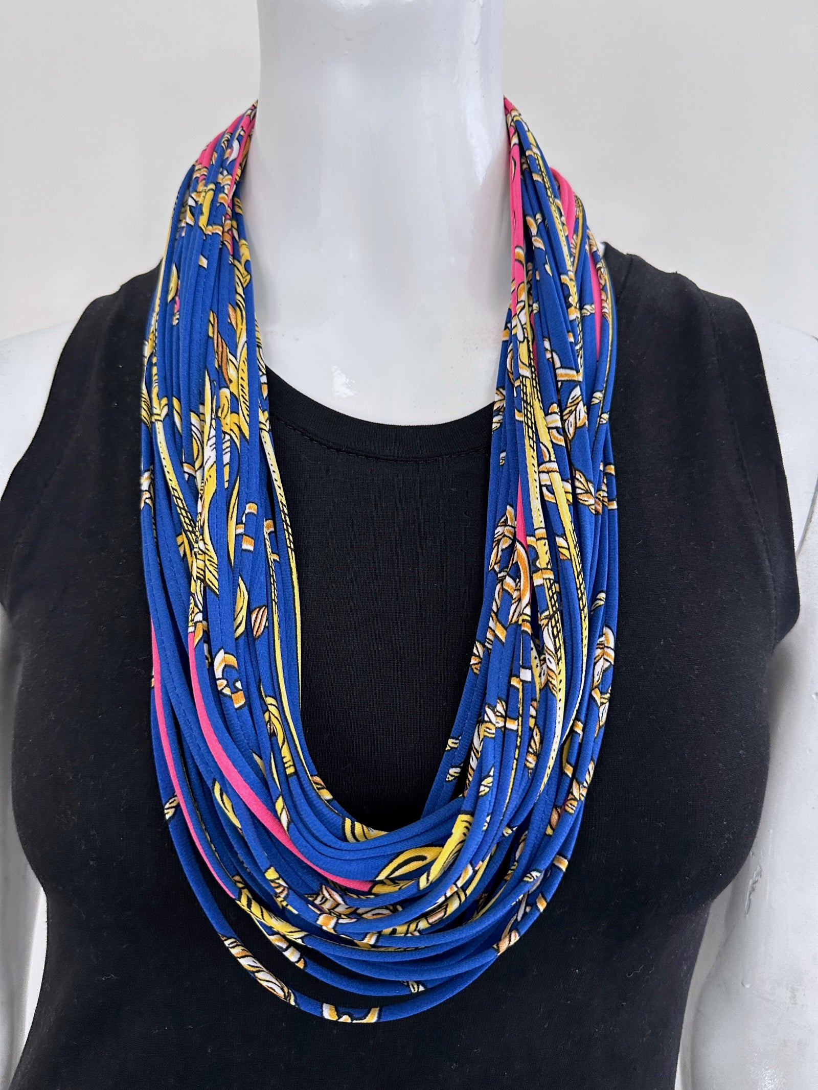 Navy Blue and Yellow Infinity Scarf Necklace