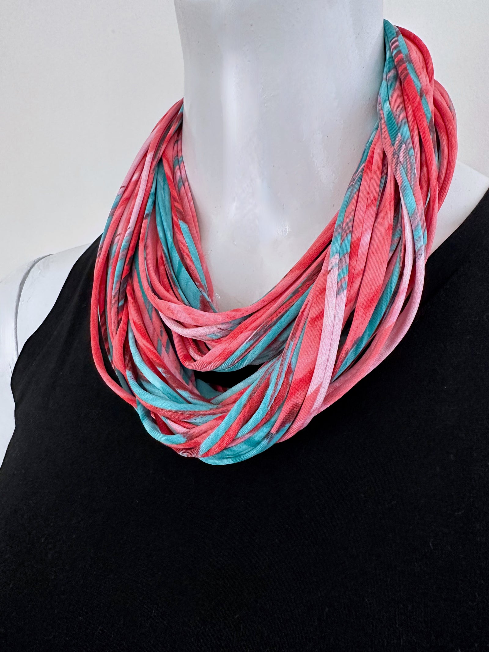 Coral and Turquoise Infinity Scarf Necklace 'Gemstone'