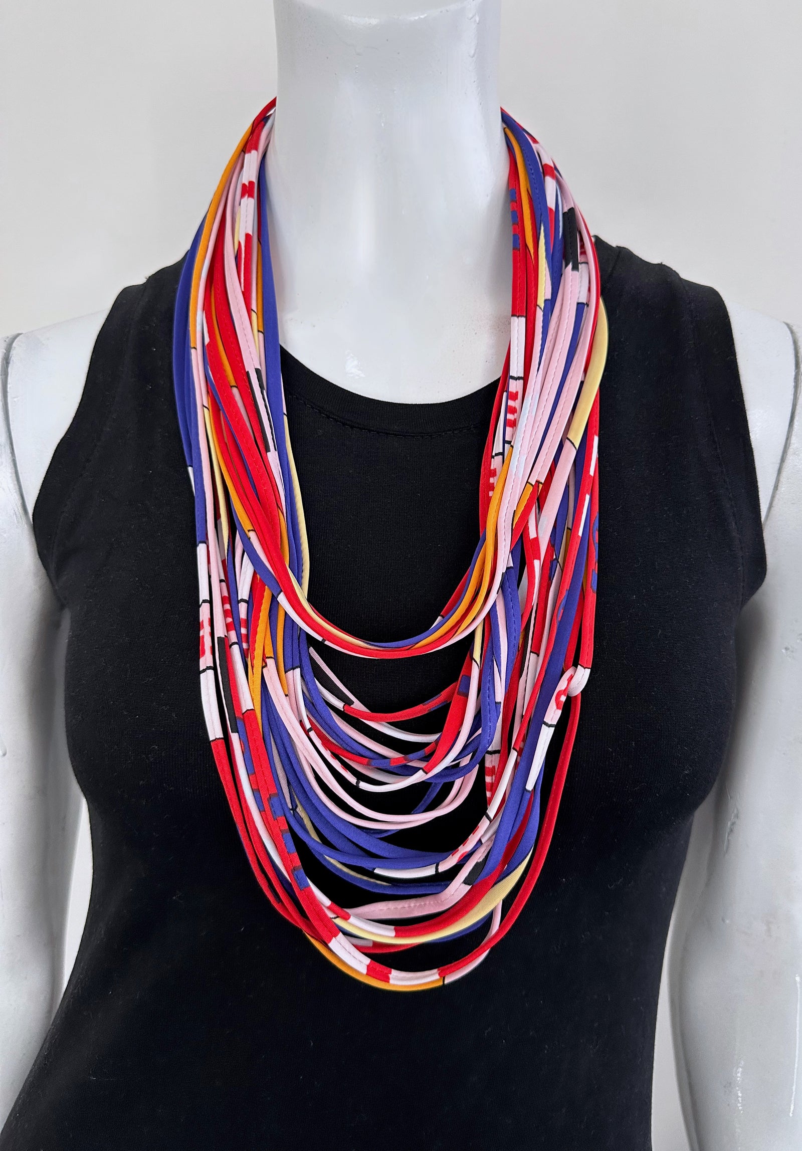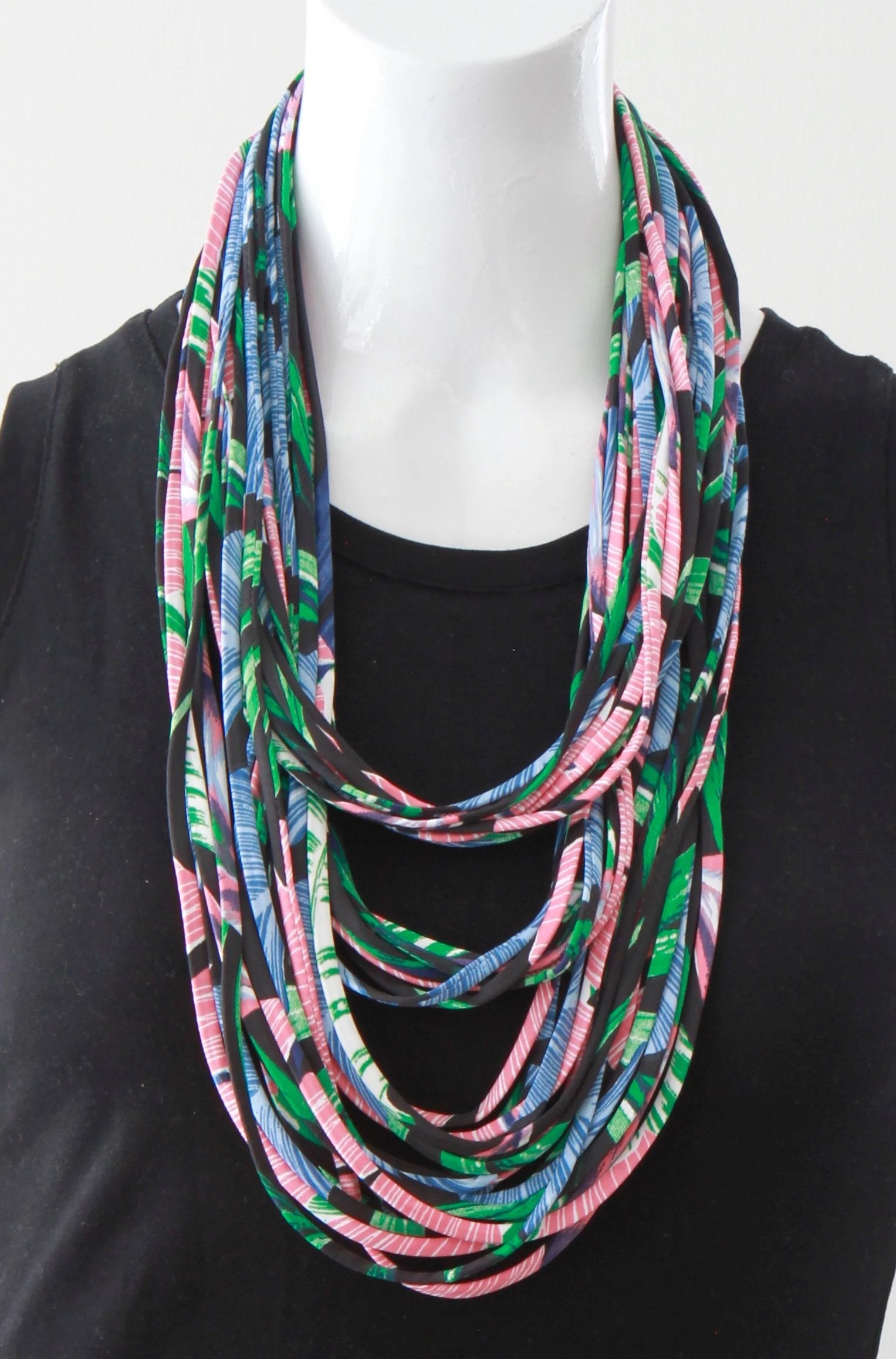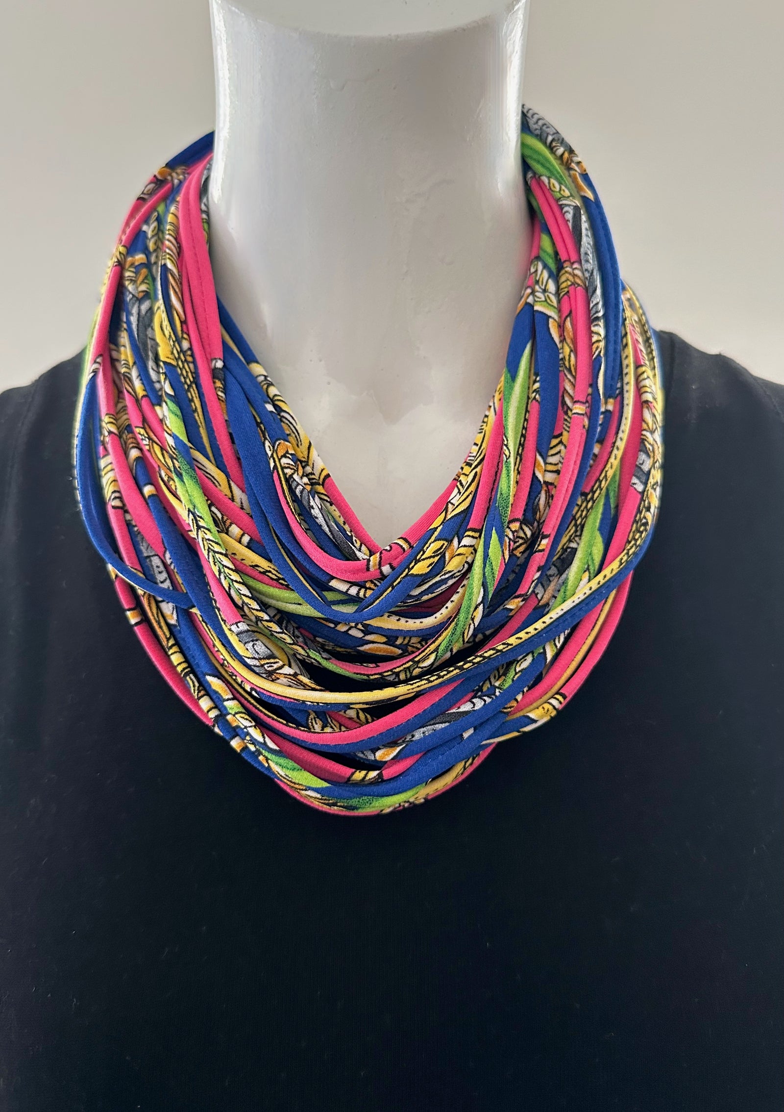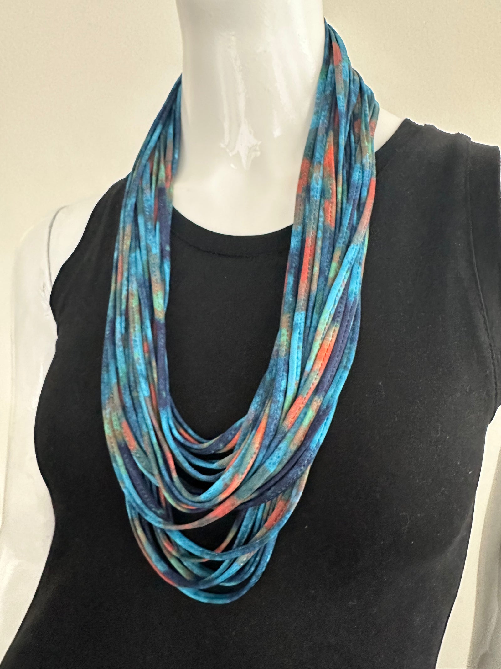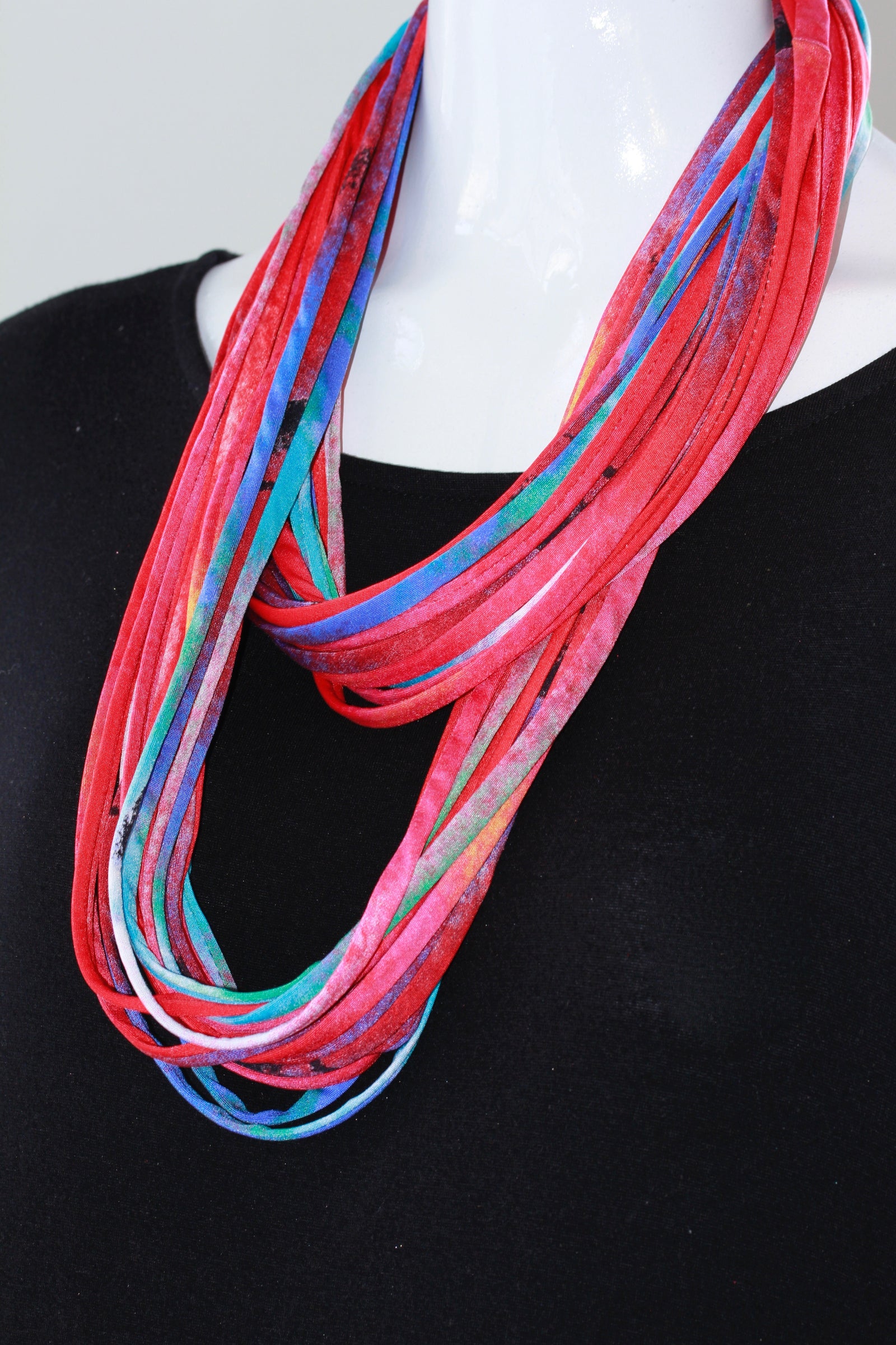 Scarf Necklace in Blue, Red and Green 'Amazonia'