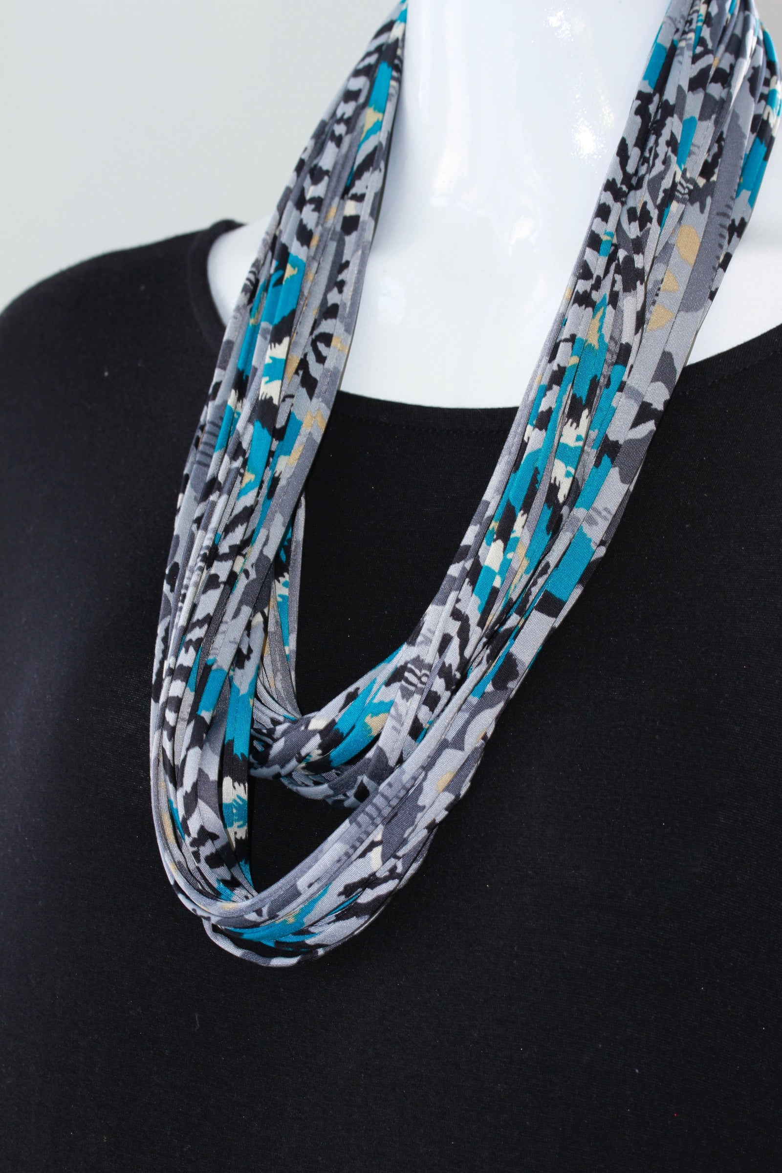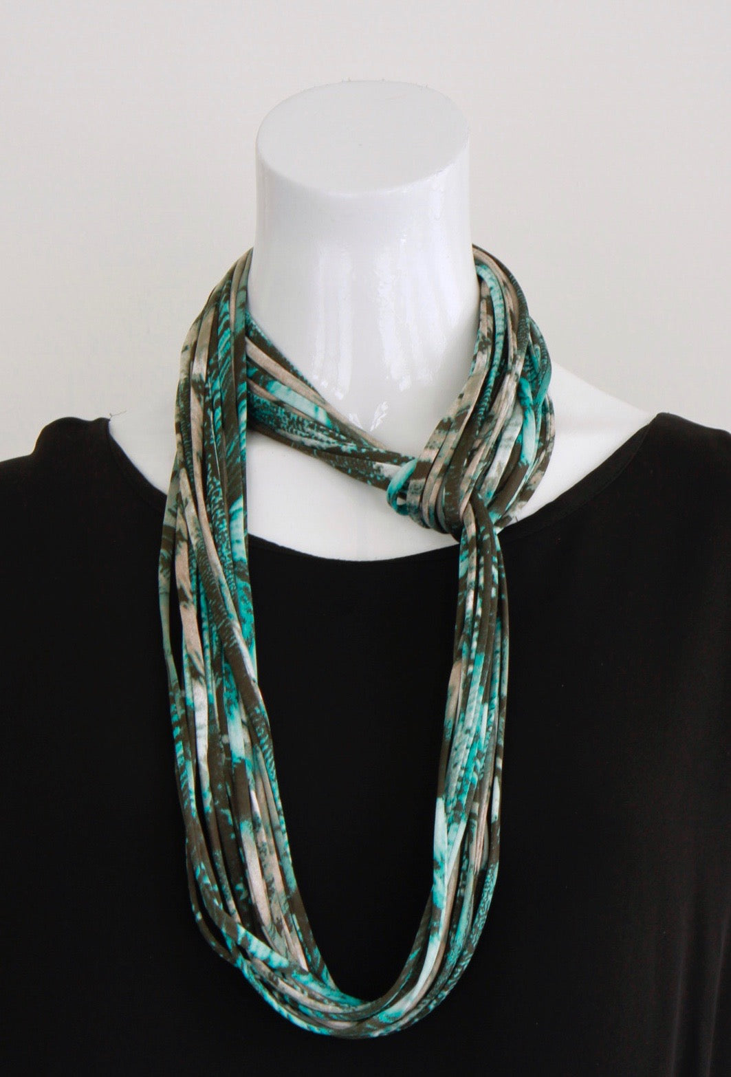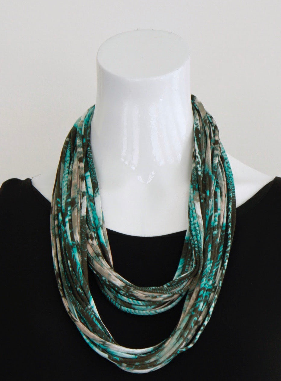 Teal, Taupe and Black Infinity Scarf Necklace 'Lucid'