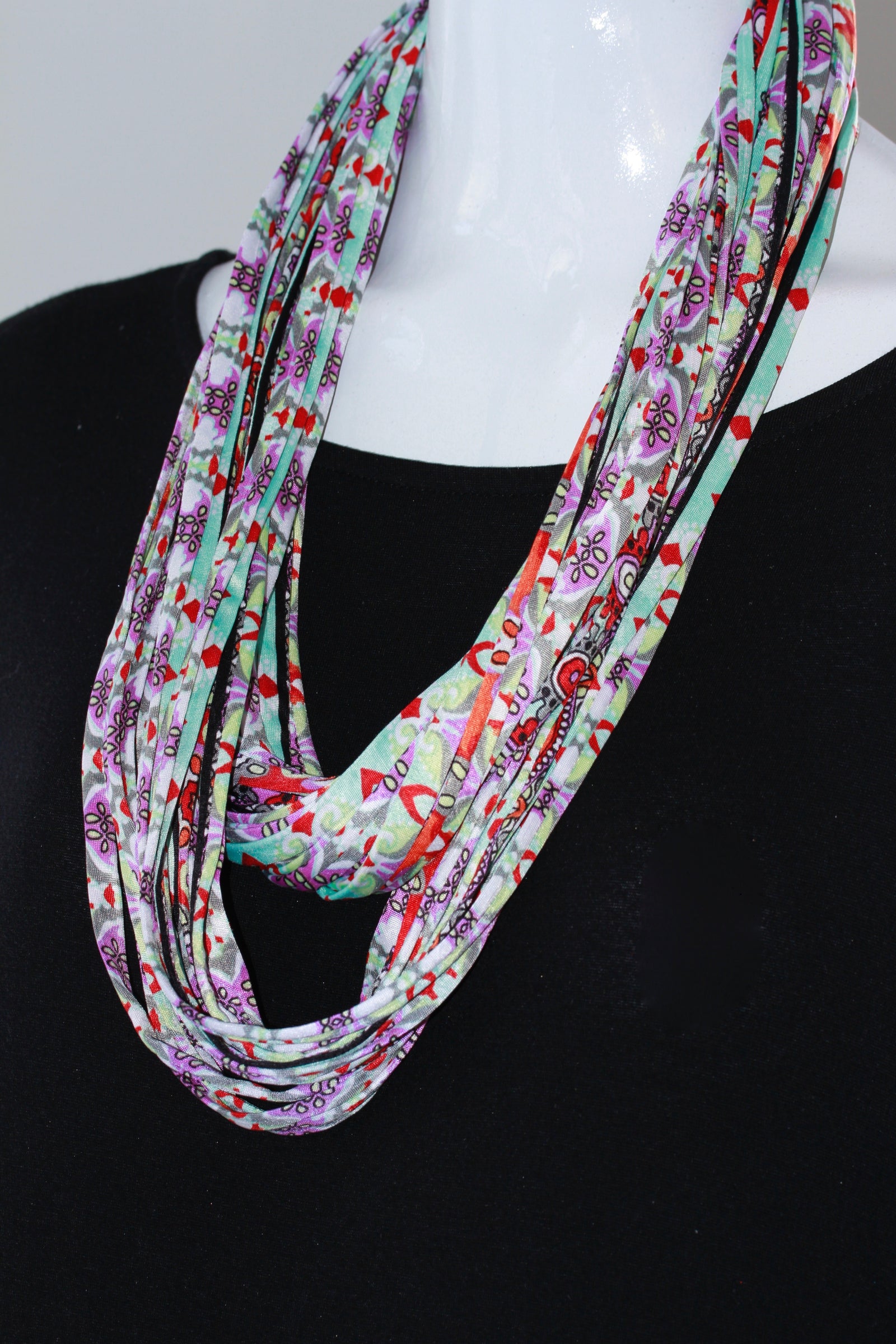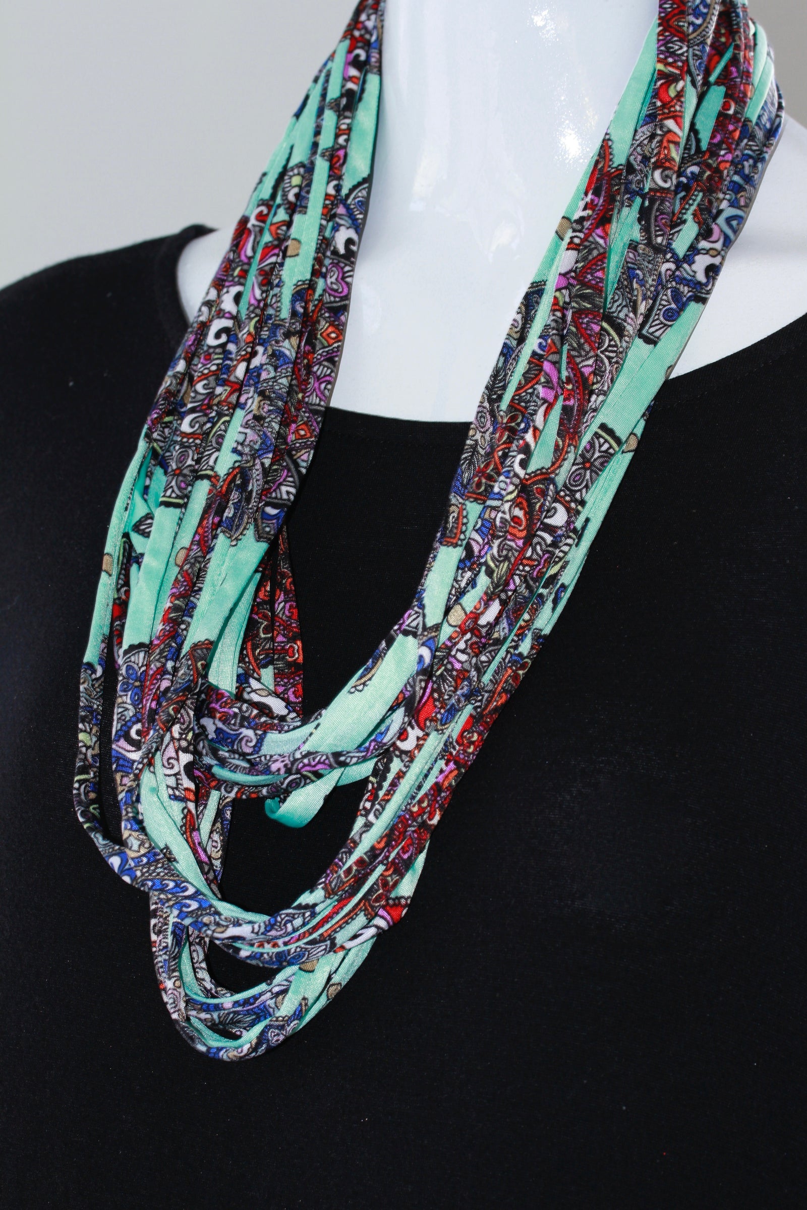 Multi-Colour Paisley Print Infinity Scarf Necklace