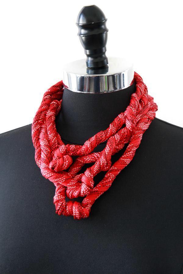 Scarf Necklace in Black White and Red 'Rose'