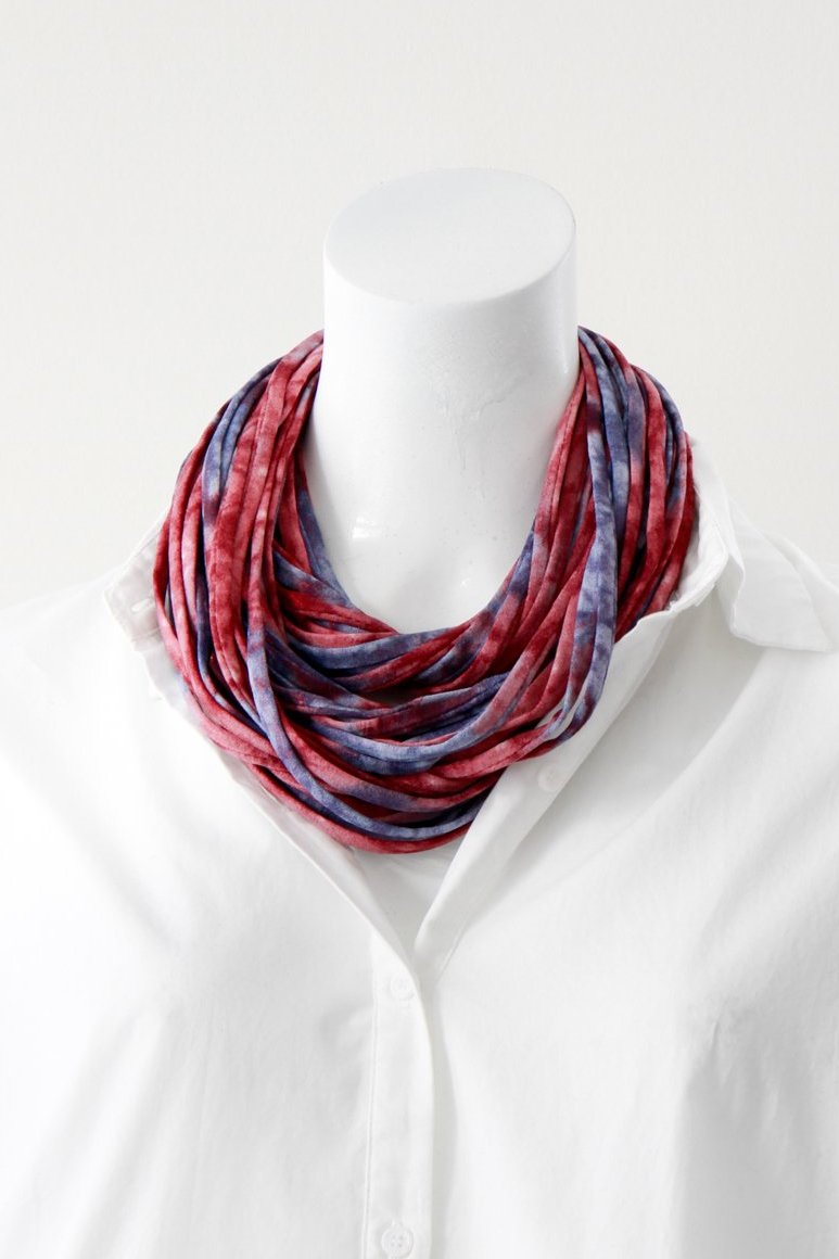 Infinity Scarf Necklace in Red and Indigo Blue 'Starburst'
