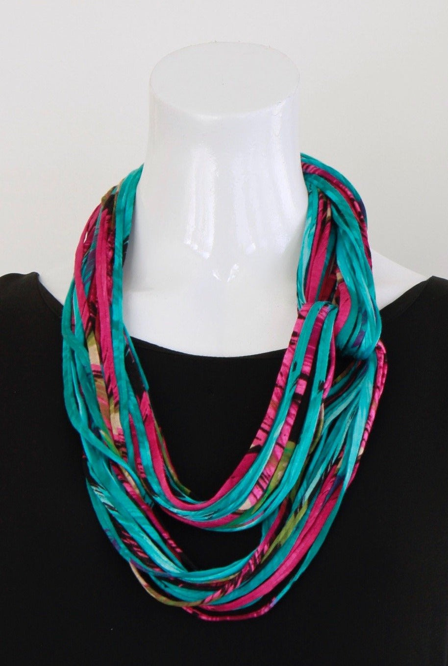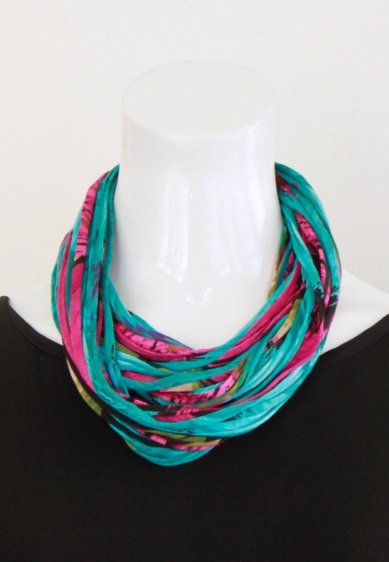 Infinity Scarf or Necklace in Teal and Magenta 'Feather'
